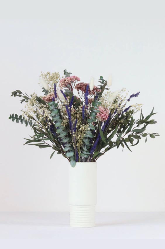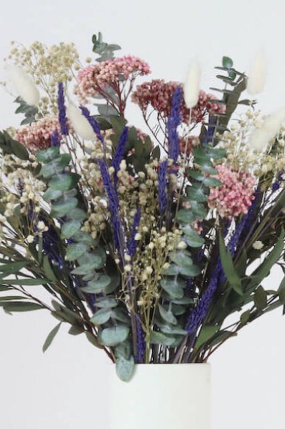 stay fresh for up to a year, the Wildflower is a stunning gifting bouquet, arriving gift wrapped and in your choice of hand-tied or arrange-at-home. The Wildflower collection combines eucalyptus foliage and pretty florals in a fresh take on floral design. A contemporary and naturally wild aesthetic brings the outdoors in, uplifts and delights.