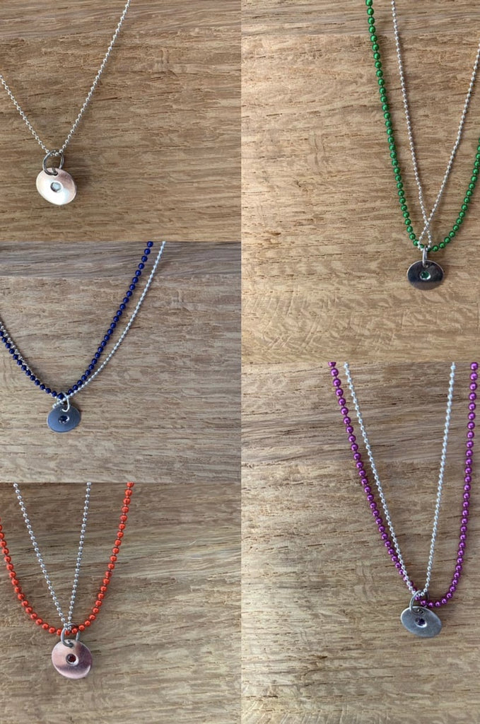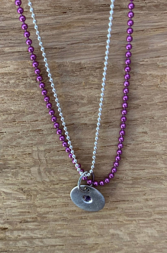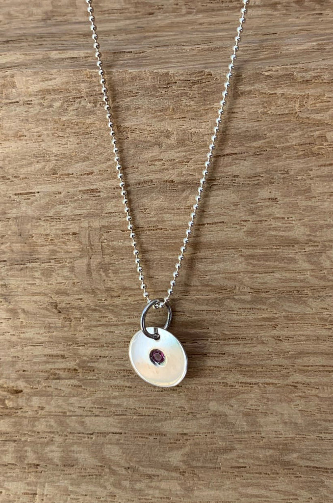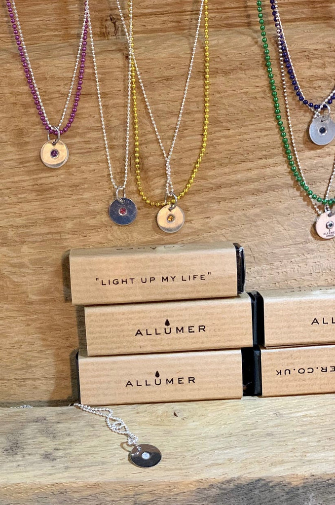 Designed and made in London, these 'Allumer' necklaces are crafted from hallmarked sterling silver and inset with a tiny gem stone. Sold with a sterling silver ball chain & a matching coloured chain.